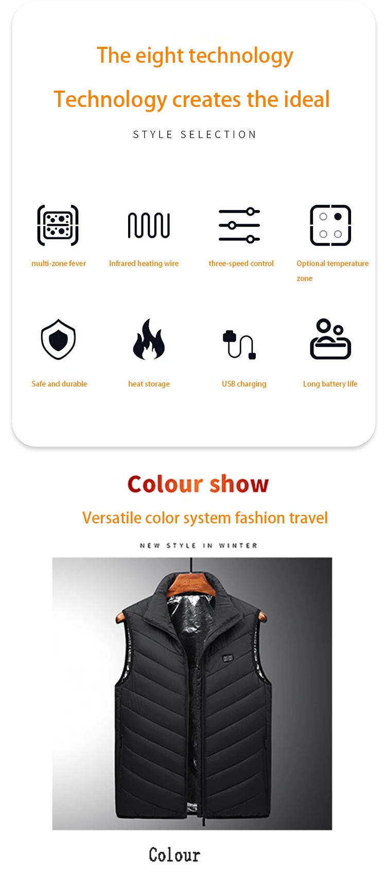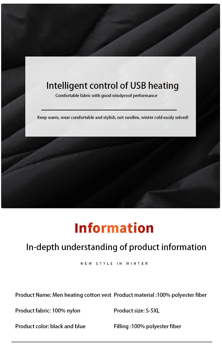 Smart Heated Vest Usb Intelligent Heating Adjustable Warm Clothing JacketUsb Jacket Vest Heated Coat Men Outdoor Heated Ves